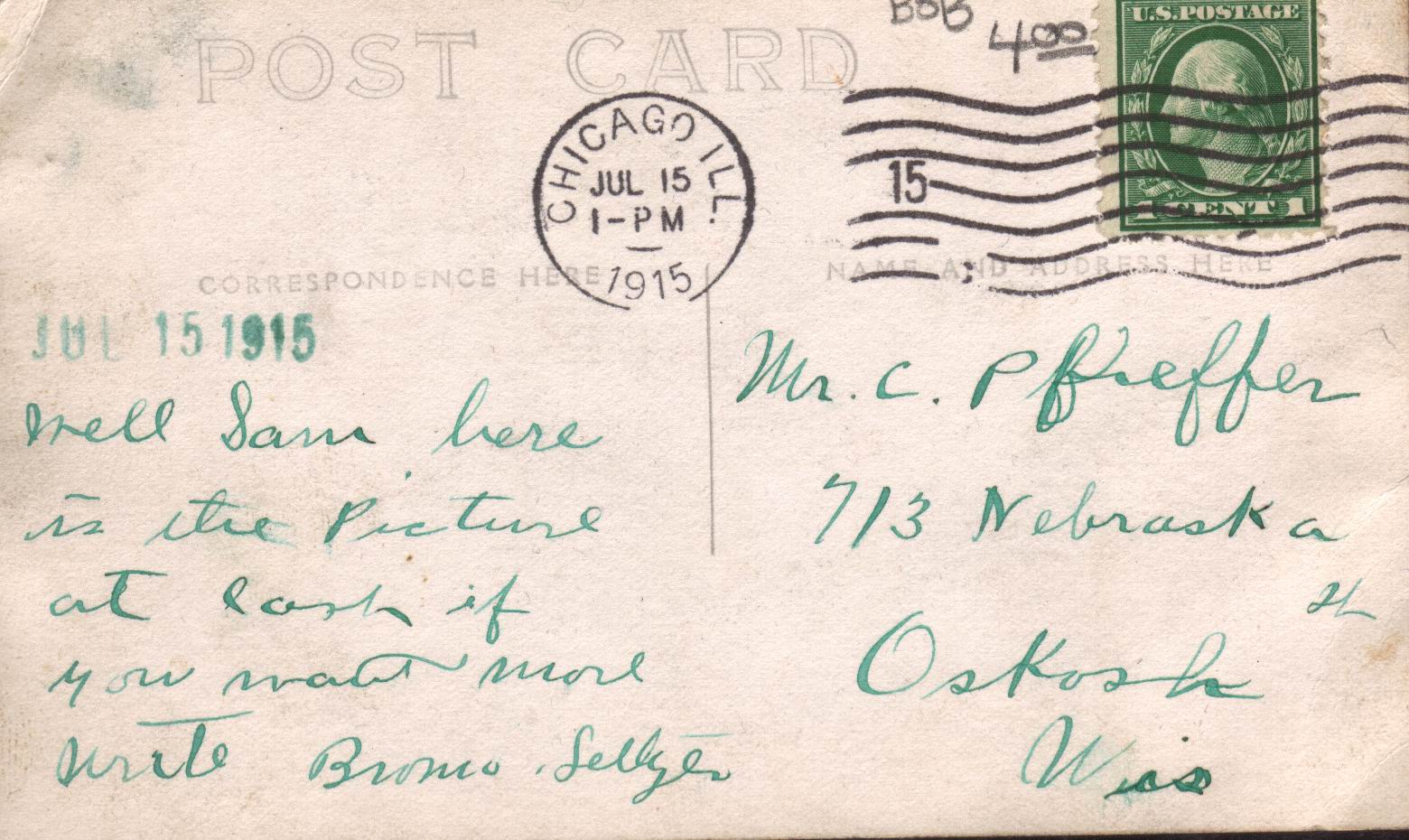 - unknown band from WI or IL? (card mailed from Chicago to Oshkosh)