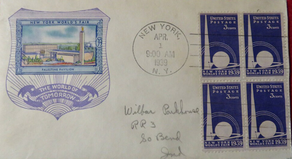 #853 First Day Covers displayed on this page were serviced with 1939 Poster Stamps and were canceled on 4-01-1939, 30 days before the Fair opened on 4-30-1939.