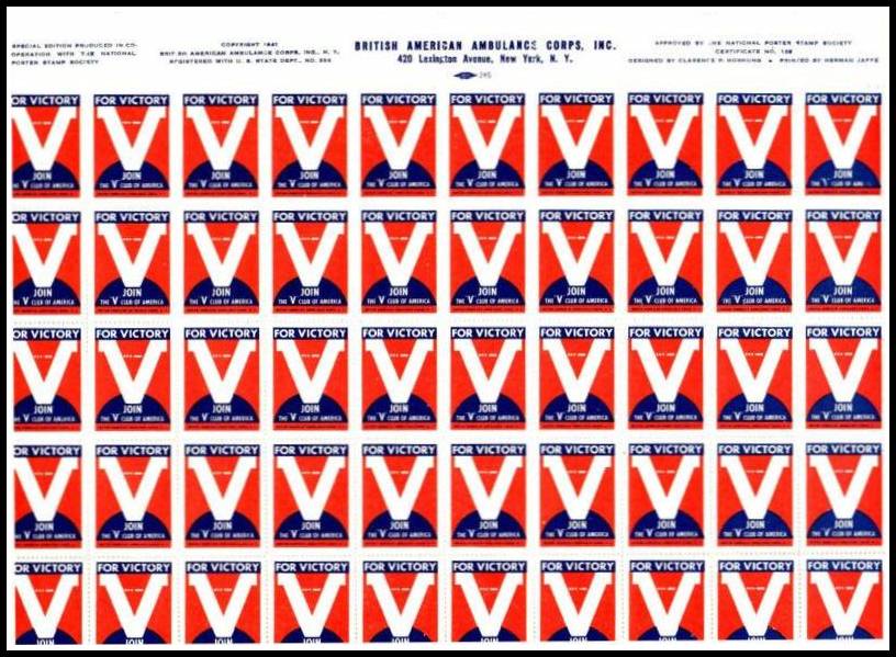 - #Victory -- "Victory" Poster Stamps (per eBay: "1940's Complete Album Of 23 Combat Stamps") -- I haven't seen any of these stamps on any 1942-1945 cover.