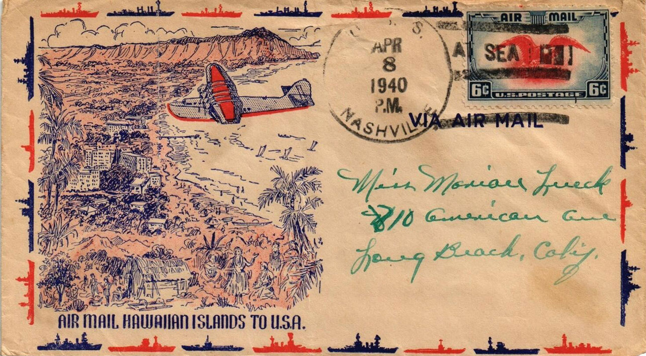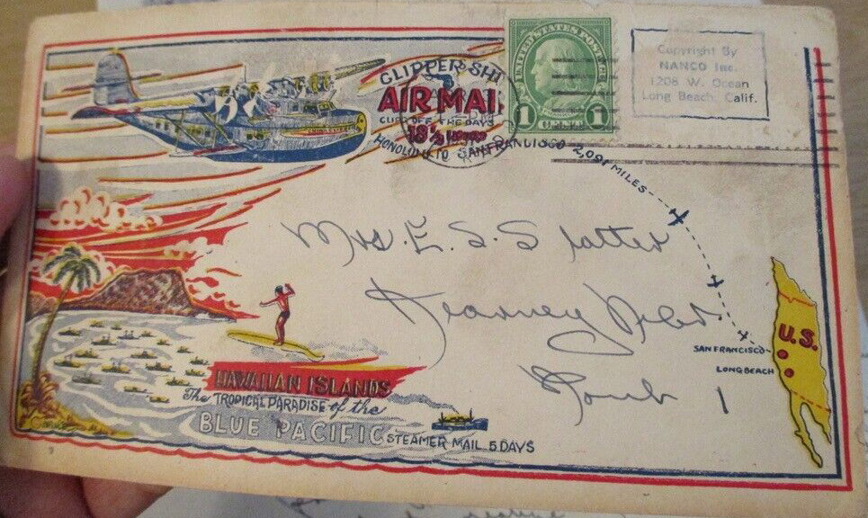The following scans are courtesy of Steve Shay (USCS). These covers were published by Nanco, Inc. of Long Beach, CA. "Nanco commercially printed stationery for use with clipper mail by sailors and also a couple of envelopes for use by the fleet when training in Cuban waters. ... There were about a half dozen designs."