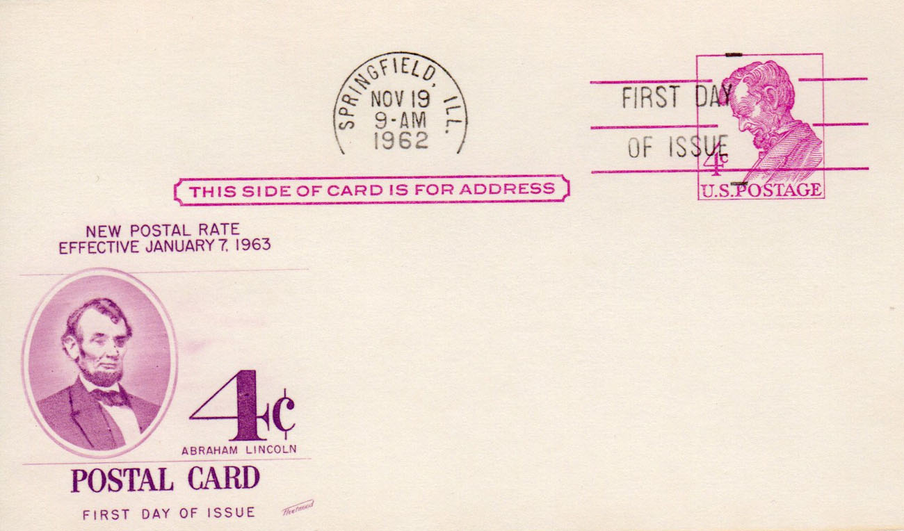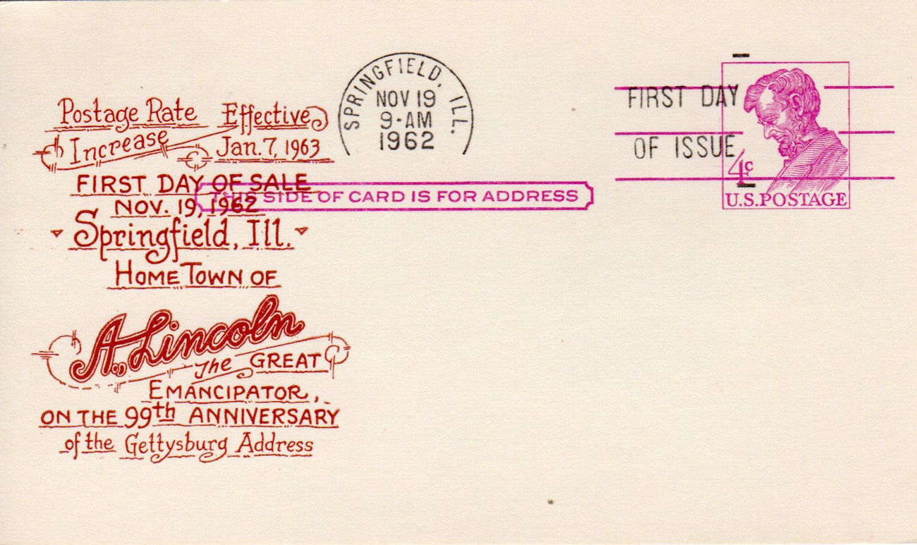 was issued on 11-19-1962 at Springfield, IL - (4¢)