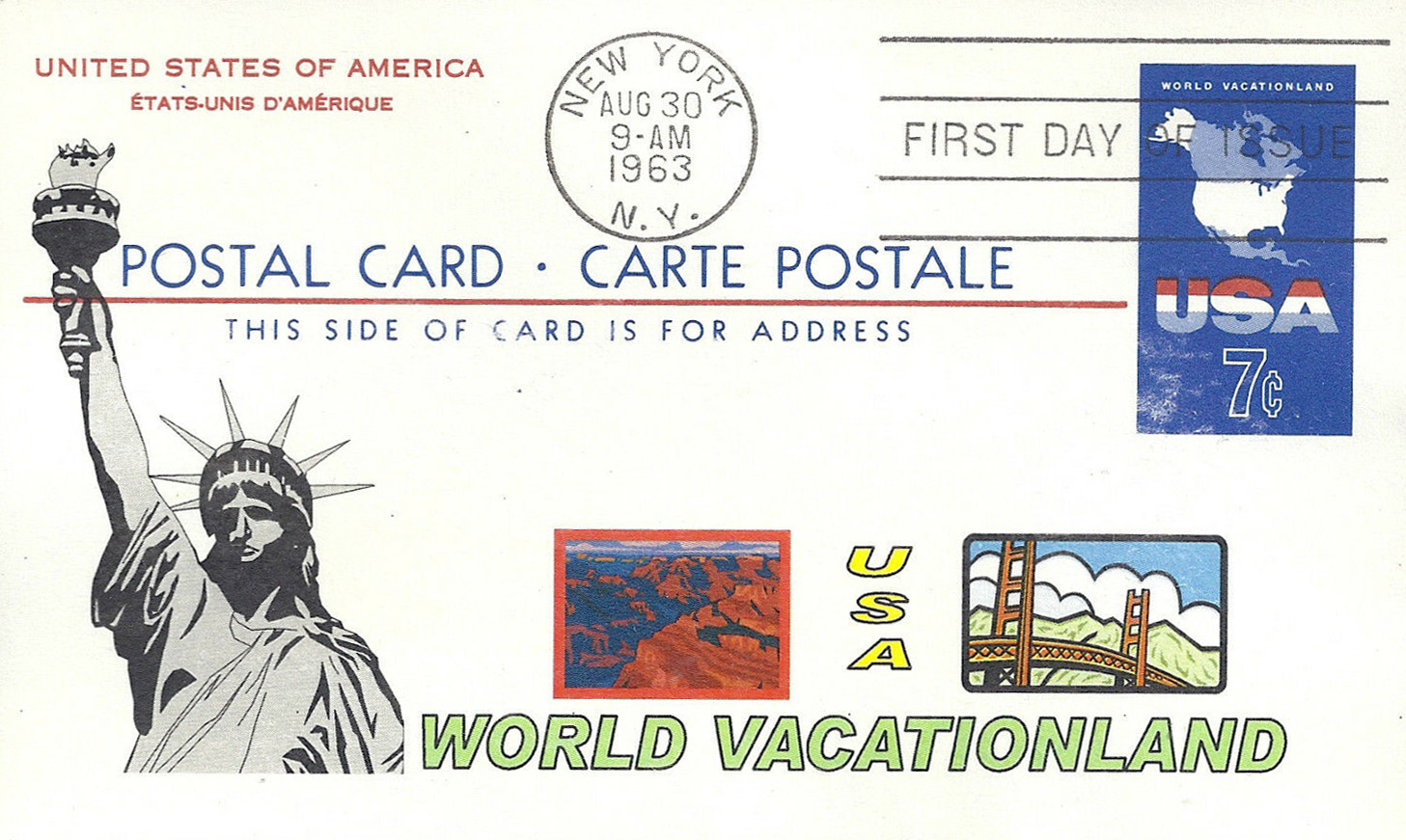 was issued on 8-30-1963 at New York, NY - (7¢)