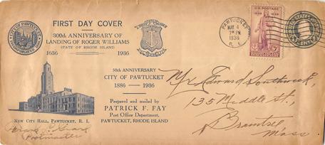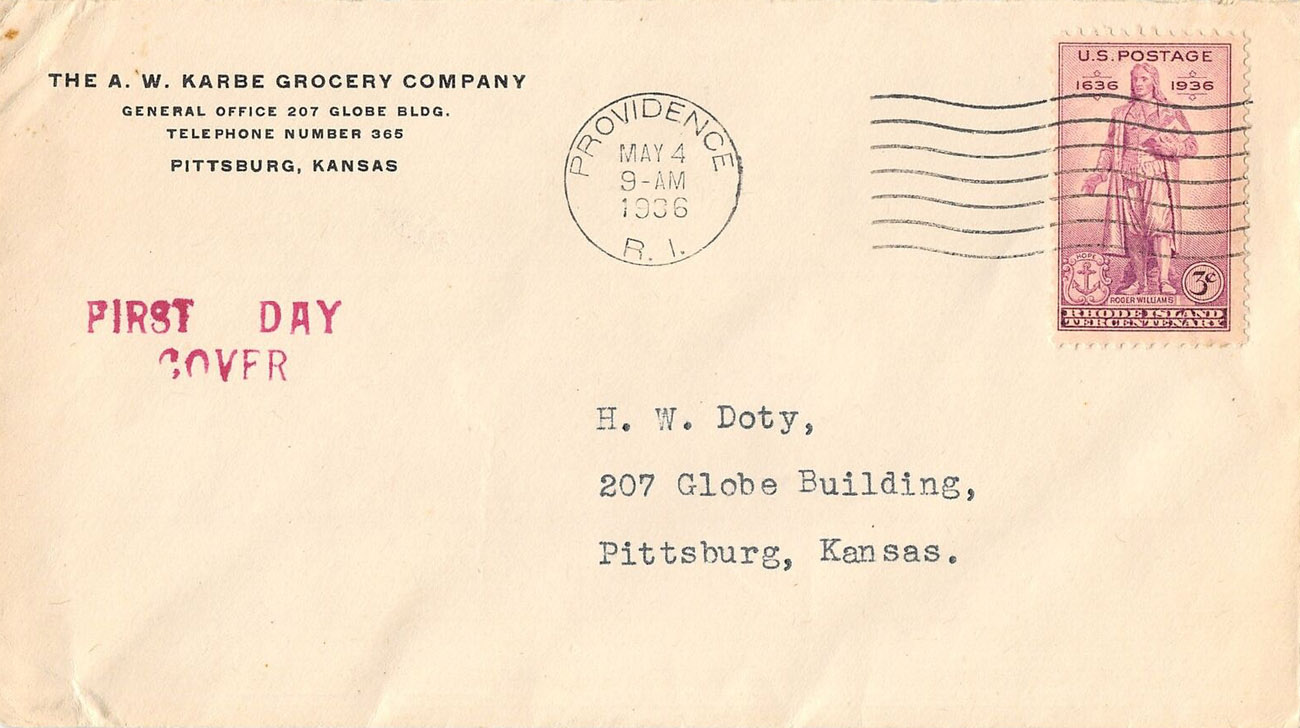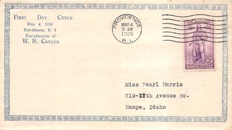 - U.S. Scott #777-33a - Providence Tercentenary Committee (corner card) -- IX:59