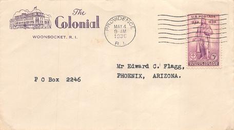 - U.S. Scott #777-CC6-NIP - The Colonial, Woonsocket, RI (corner card) (eBay ***)