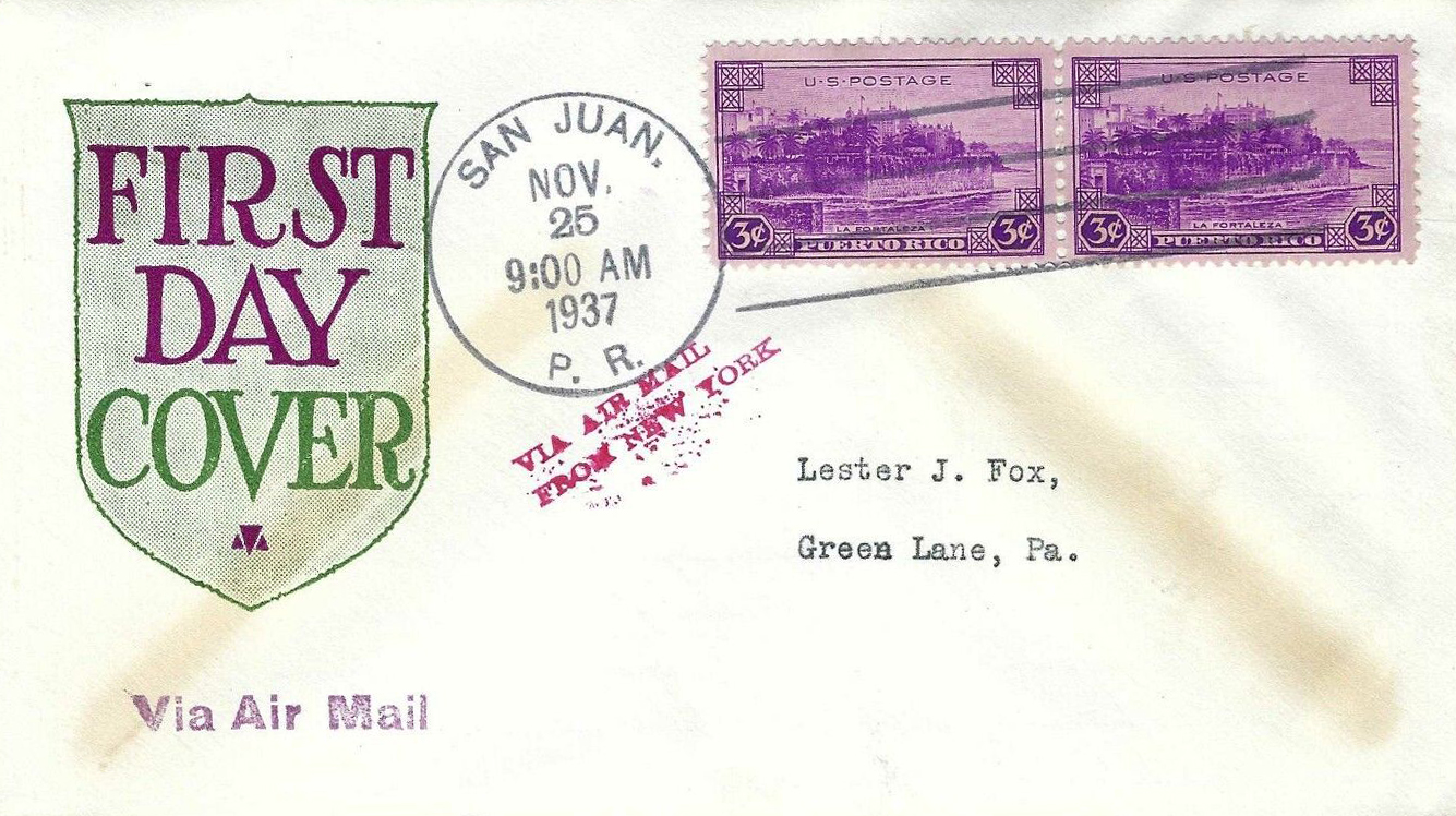 #801, Puerto Rico Territorial was issued on 11-25-1937 at San Juan, PR - (3¢)