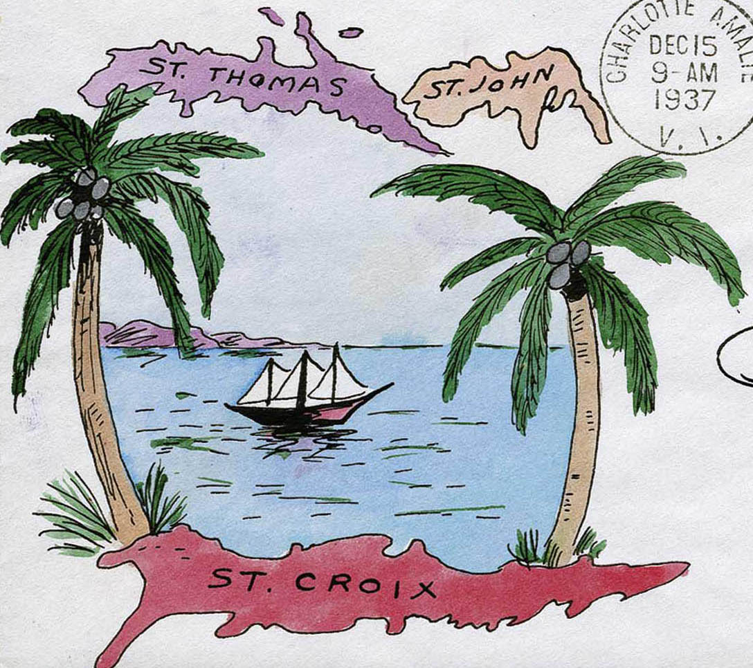 #802, U.S. Virgin Islands Territorial was issued on 12-15-1937 at Charlotte Amalie, VI - (3¢)