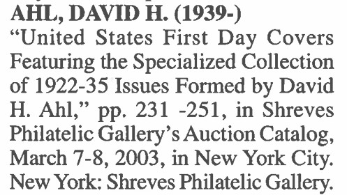 - A Bibliography of Famous First Day Cover Collections Sold at Auction or Through Mail Sales,