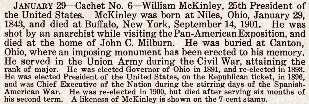 - 1935-01-29 -- Cachet #6 -- (PBD) Anniversary of the birth of William McKinley, 25th President of the United States.