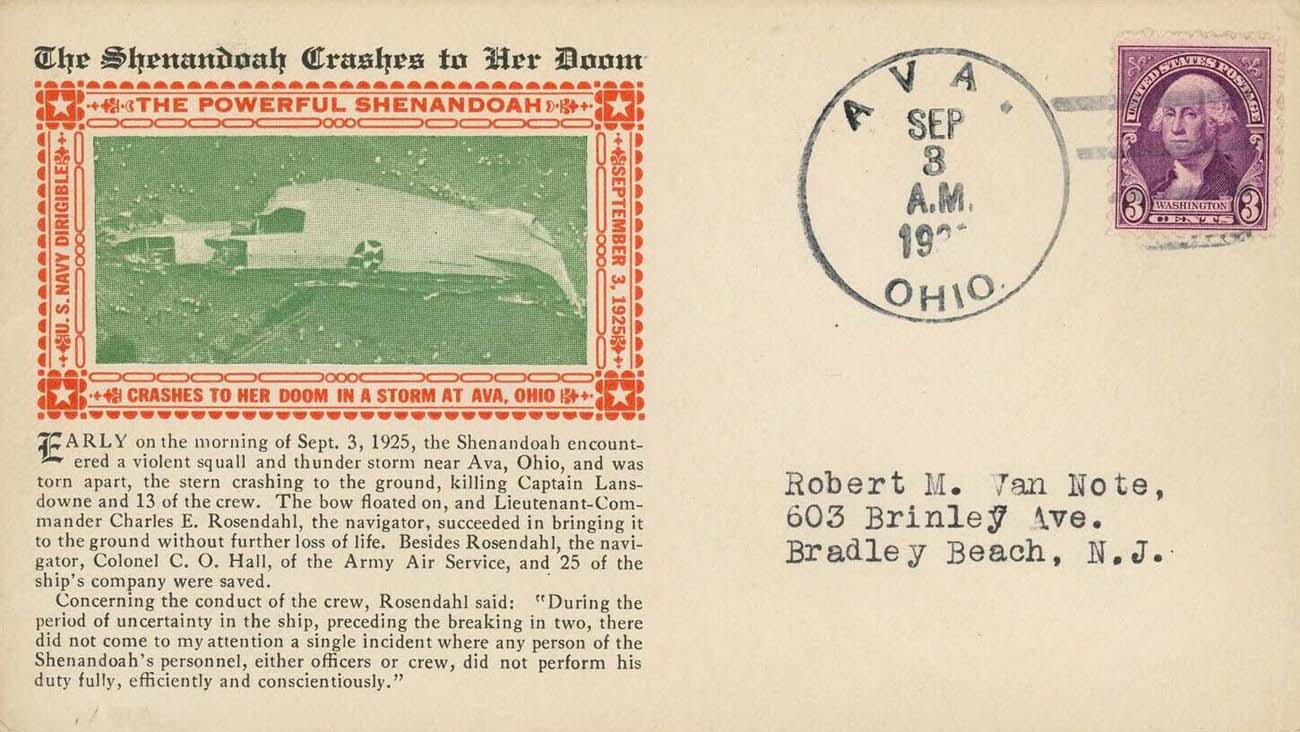 - 1935-09-03 -- Cachet #57 -- (UCHC) "The Shenandoah Crashed to Her Doom". --- (eBay)
