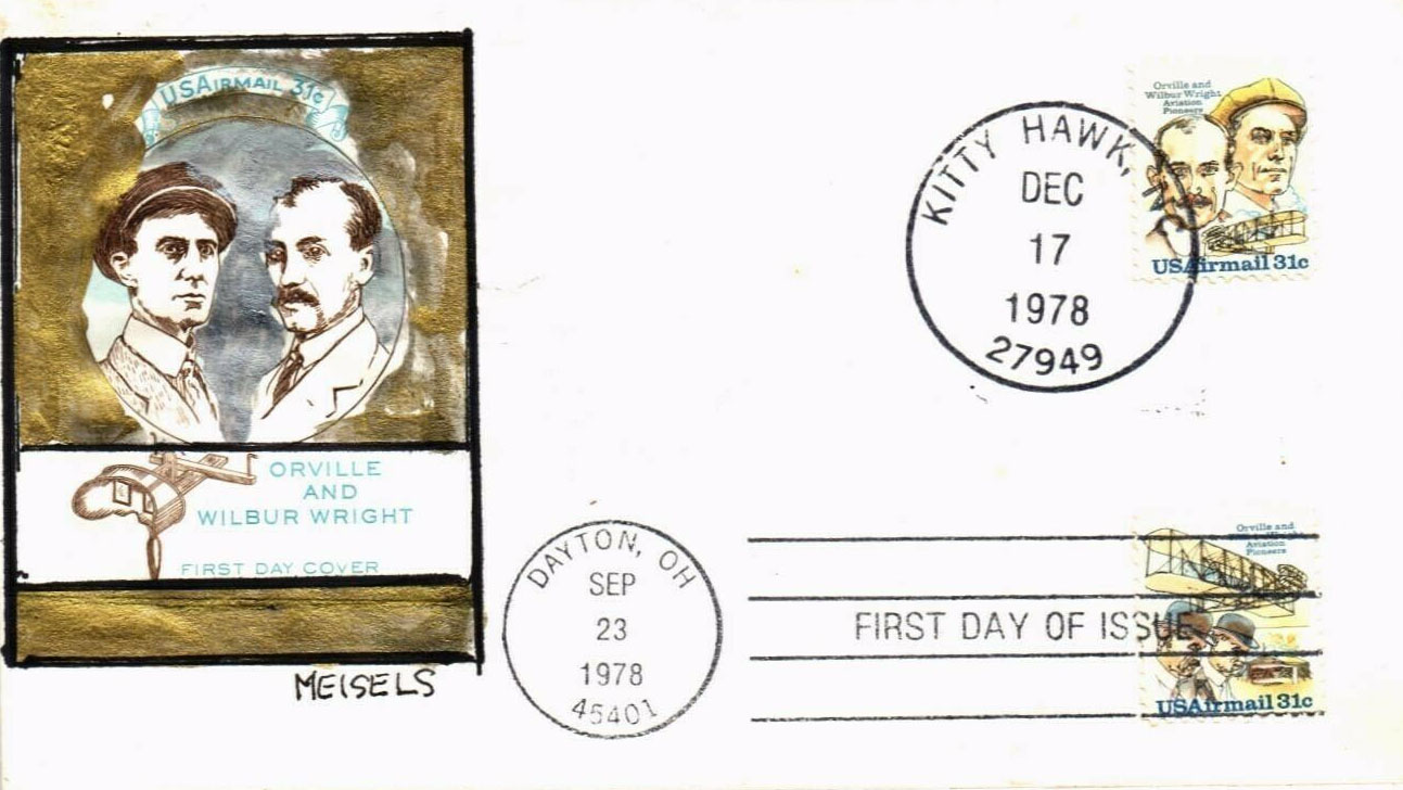 "A Touch of Class First Day Covers". Because of his unique painting style, I think he did all of the cachets on this page, even the unsigned ones, but I may be wrong in some cases. No Meisels cachet has appeared in any published Catalog that I am aware of. No details about this Cachetmaker have come to light, so it is unknown whether or not any of these cachets were painted before they were canceled or if they are all add-ons applied possibly years after the First Day date. Except for #649-650 and #1952, I have seen no duplicates (the same design with two different addressees) of any other designs, so the rest of the cachets may be one-of-a-kind. Except as noted by "{A}" (mistakes I bought for my personal collection, covers on order have not arrived yet), the other displayed covers were found on the Web.