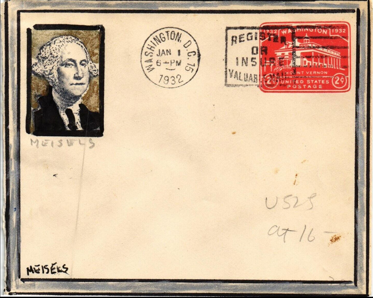 - U.S. Scott #U527, 1-01-1932, A Touch of Class (Herb Meisels) (add-on) --- (eBay)