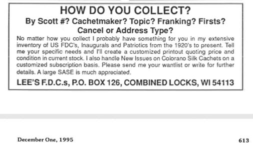 This page is a long overdue follow-up to my 1983 article, "Wisconsin FDC Cachetmakers" published in the AFDCS,
