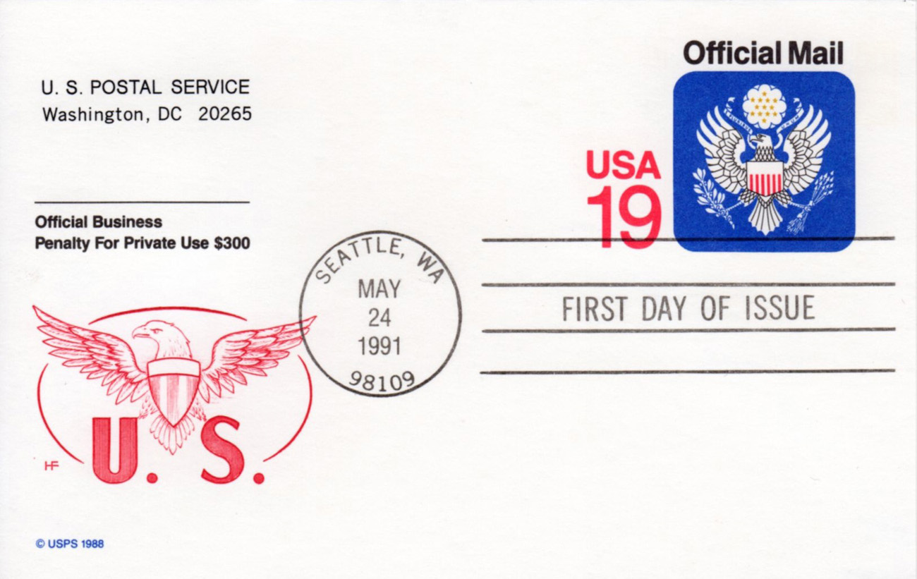 U.S. Scott #UZ5 Official Postal Card was issued on 5-24-1991 at Seattle, WA (19¢)