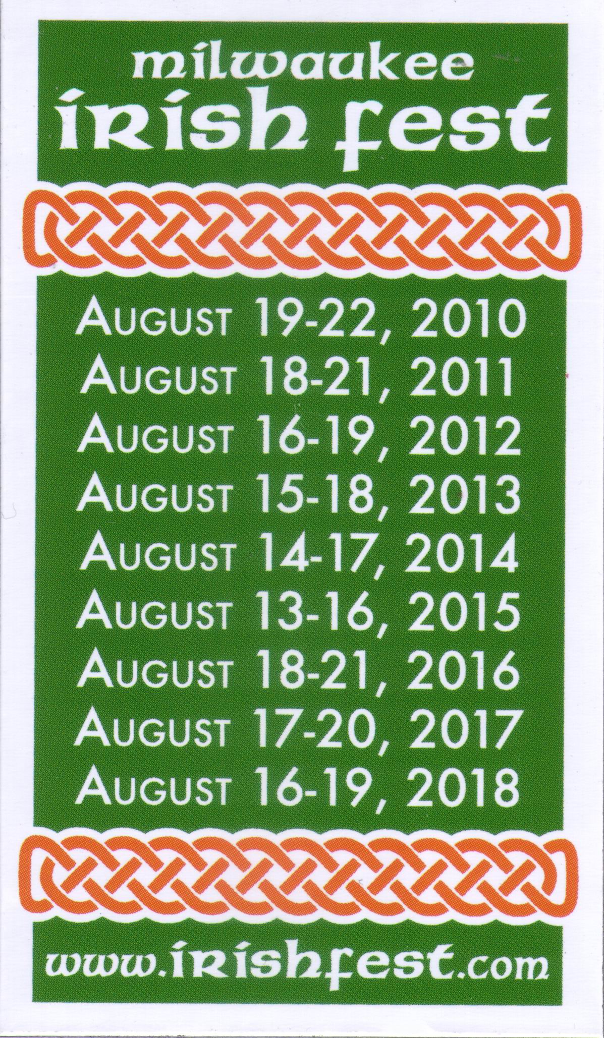 Keep these dates open for future Milwaukee Irish Festivals: