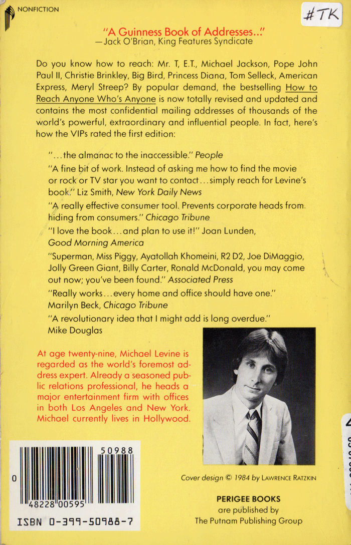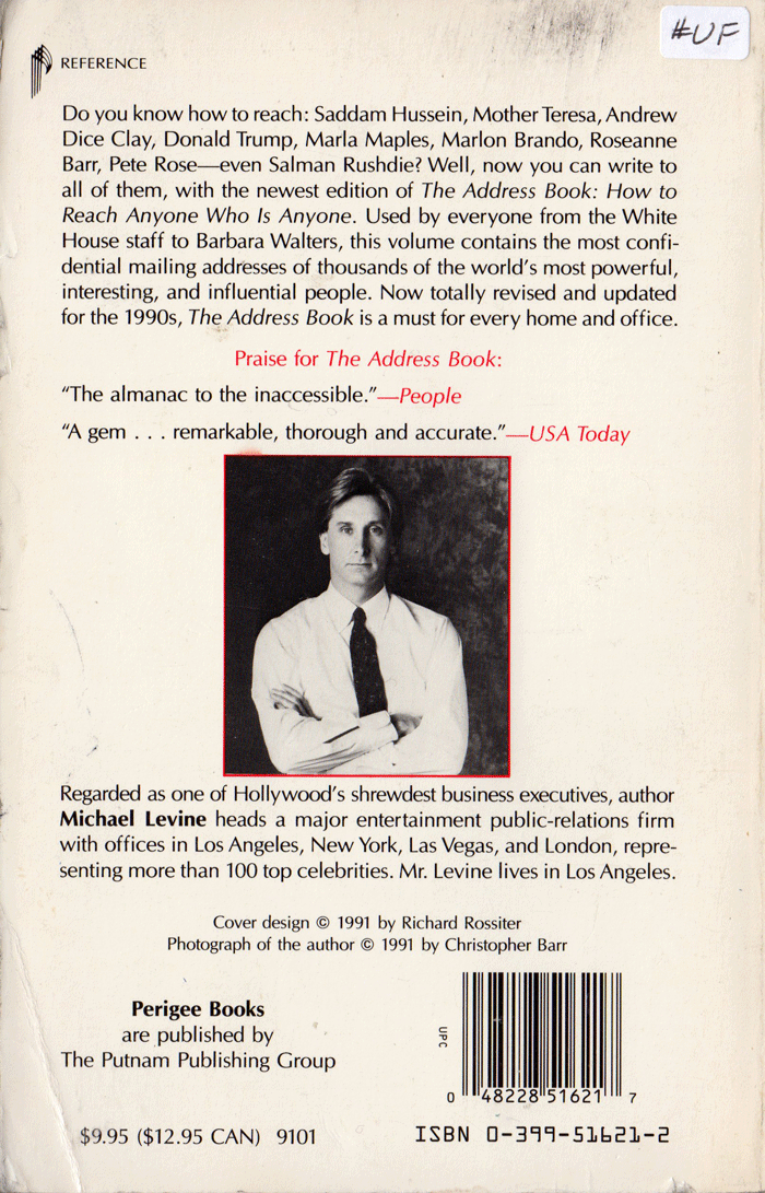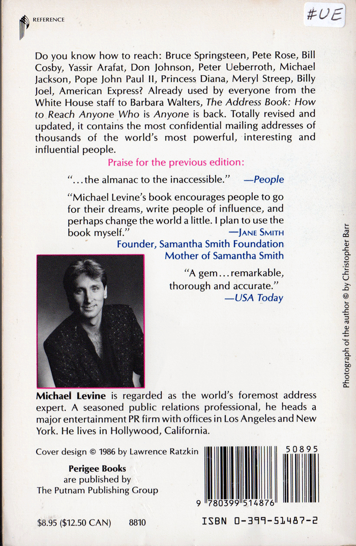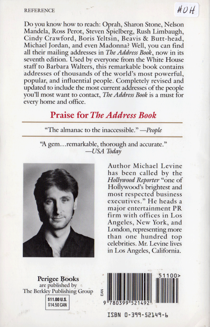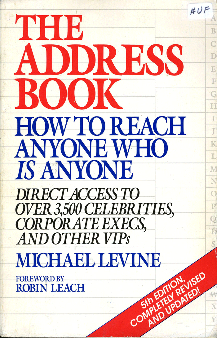 This bibliography page lists Music Reference Books with postal street addresses for many different musicians and other celebrities published by Michael Levine.