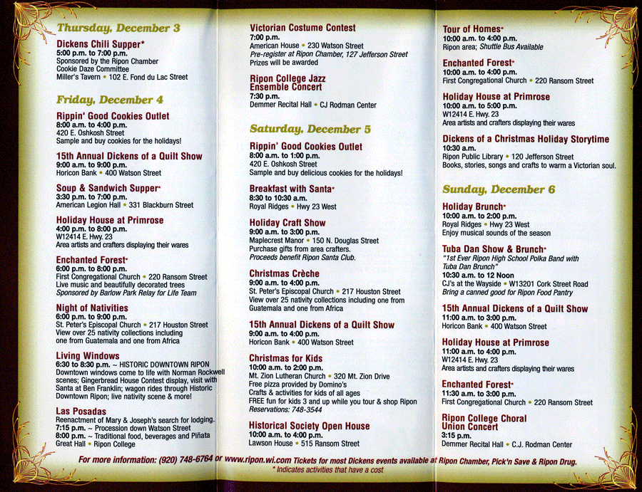 WANTED: Brochures: 1990 (1st Annual Dickens of a Christmas) - 2008 (18th Annual)