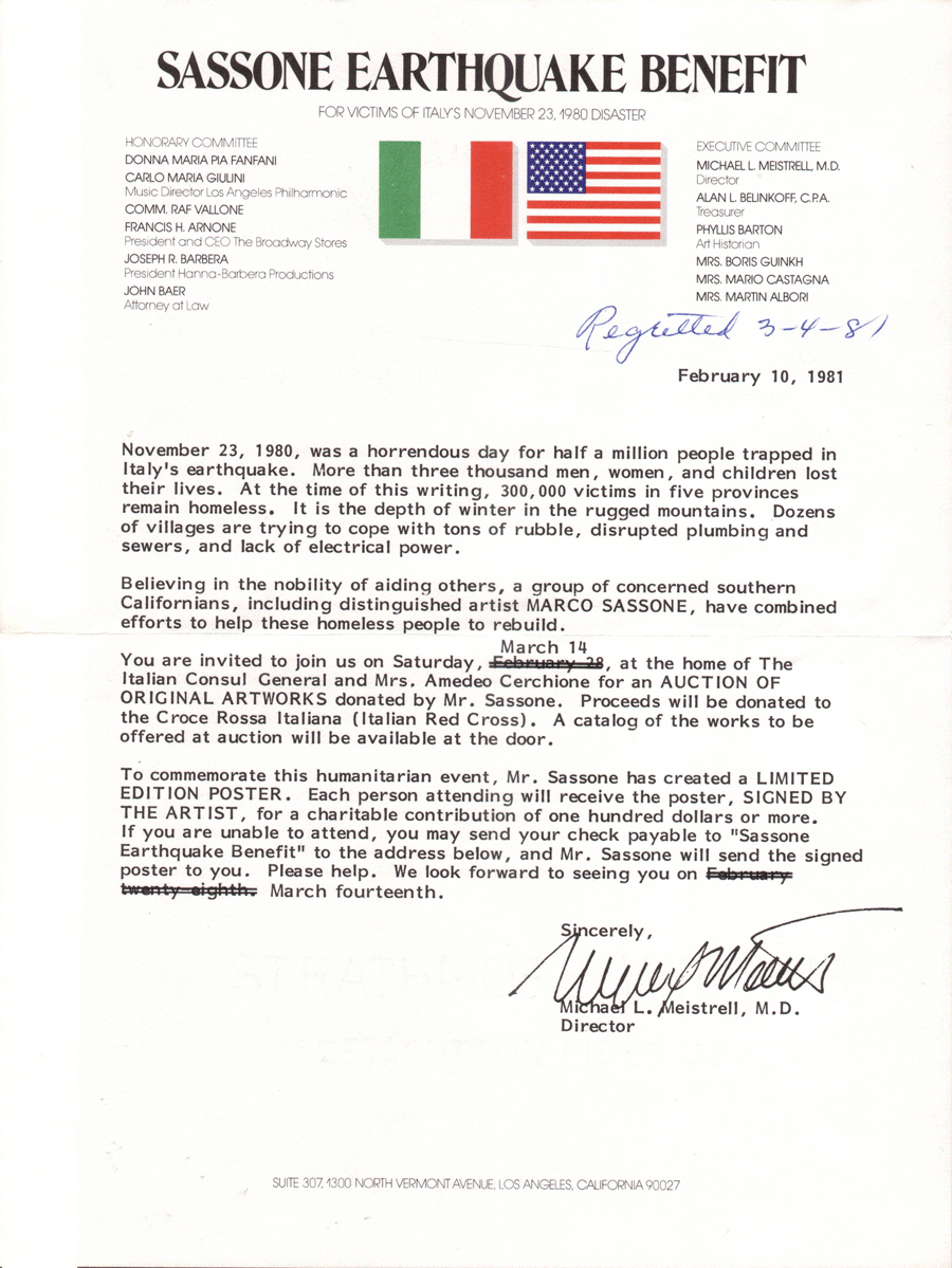 "Sassone Earthquake Benefit for victims of Italy's 11-23-1980 disaster",